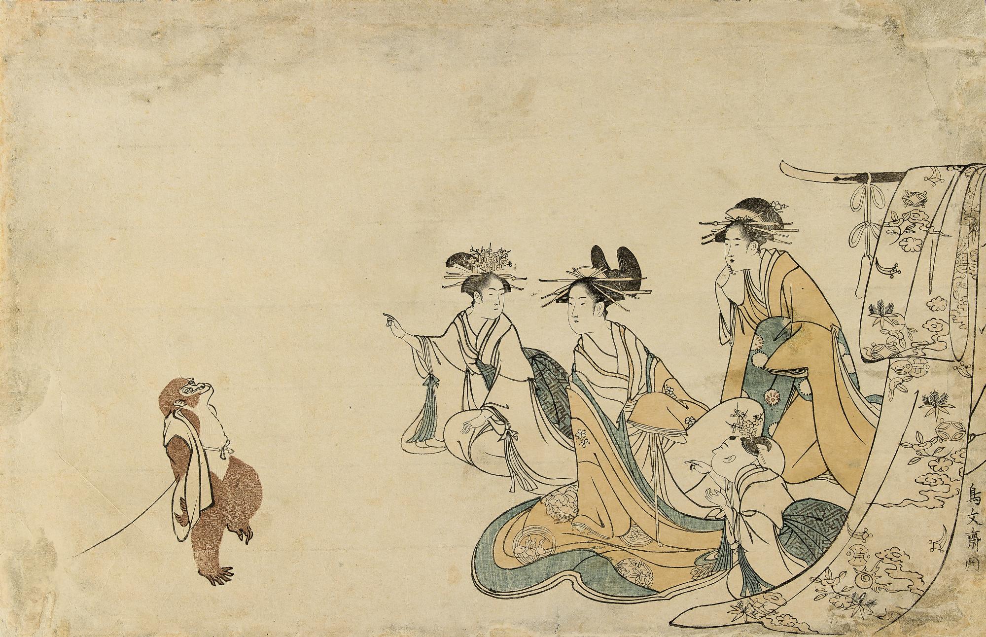 Museoteca - Mono amaestrado, Eishi, Chobunsai y Shinegemasa, Kitao