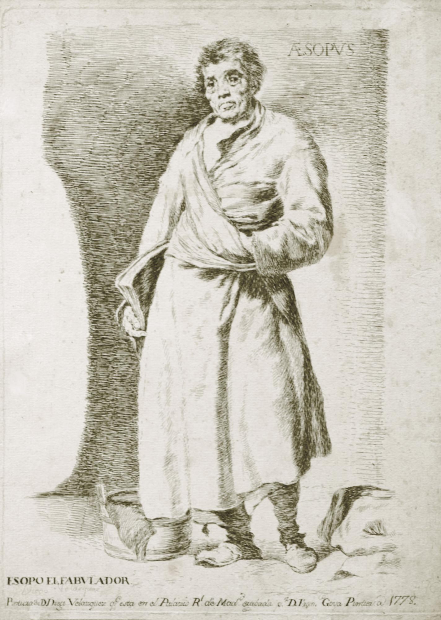 Prueba de estado de la estampa de Esopo que forma parte de la serie de grabados de las Copias de las pinturas de Velázquez.