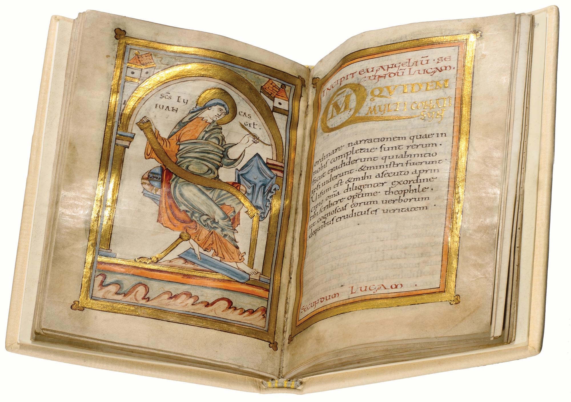 This was the favourite book of Margaret, an eleventh-century queen of Scotland. It is a gospel lectionary ? that is, a selection of passages from the Gospels. Each of the four series of extracts is preceded by a beautifully illuminated page containing the first words of the relevant gospel and a miniature of the evangelist. Small (with just thirty-eight pages) and therefore portable, it was a book for everyday devotion. Renowned for her piety and good works, and for the civilizing influence she had on matters of politics and religion, Margaret was canonized in 1249?50. While she was crossing a ford one of her retinue unwittingly dropped this gospel-book into the water. Sometime later the book was found miraculously unharmed.