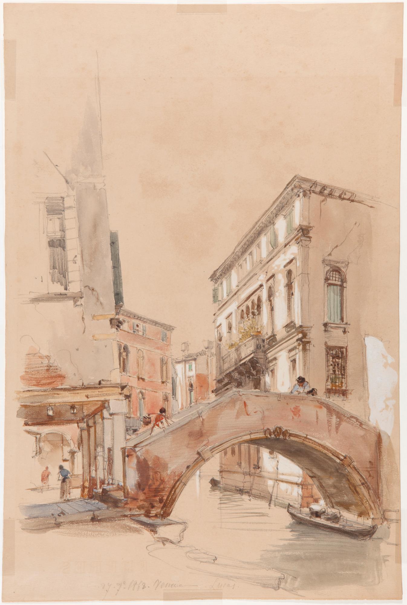 Dibujo realizado por Eugenio Lucas durante su estancia en Venecia, etapa final de su viaje realizado durante el verano de 1868 por la casta mediterránea de Francia, Mónaco e Itañia.