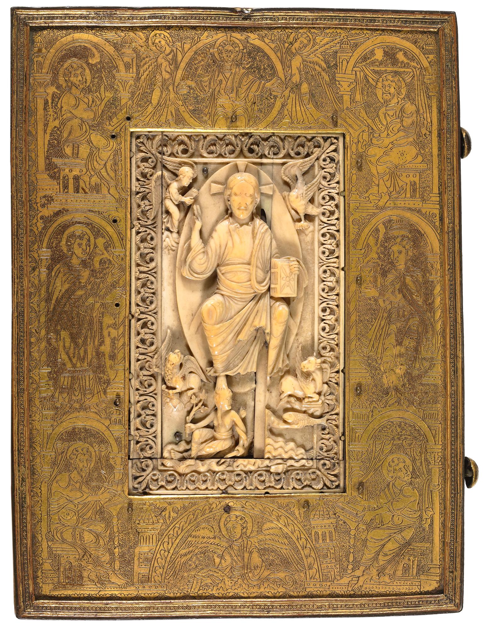 This precious binding encloses a lavish manuscript of the Gospels of Matthew and Mark.